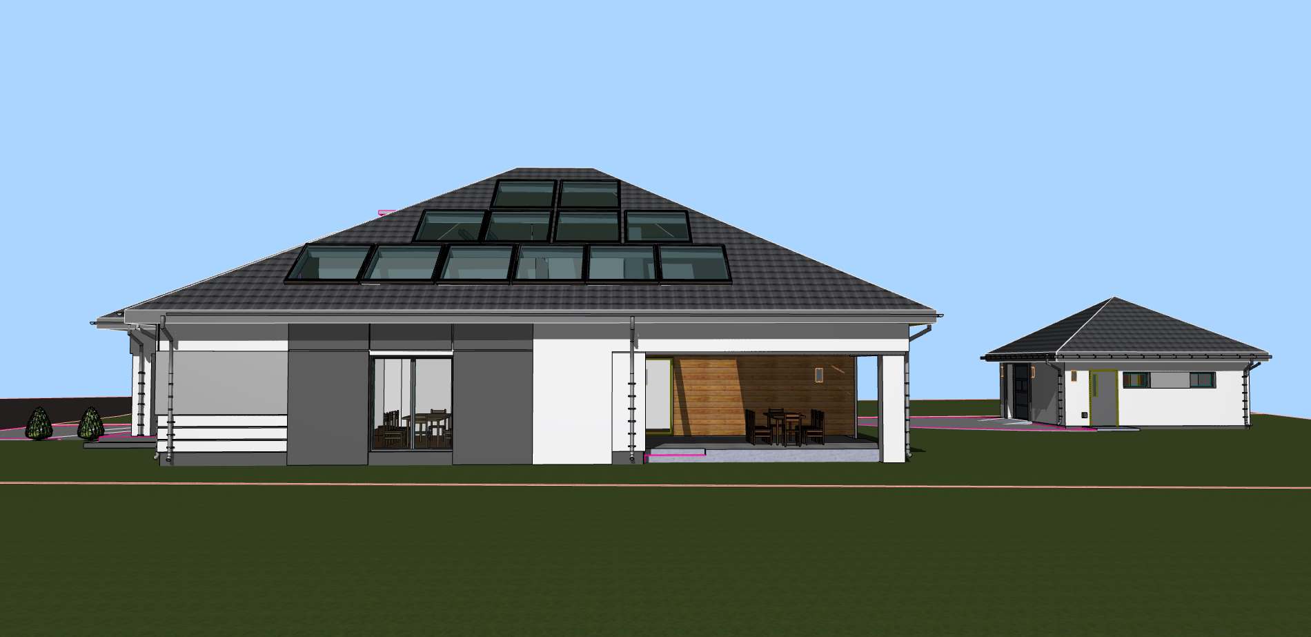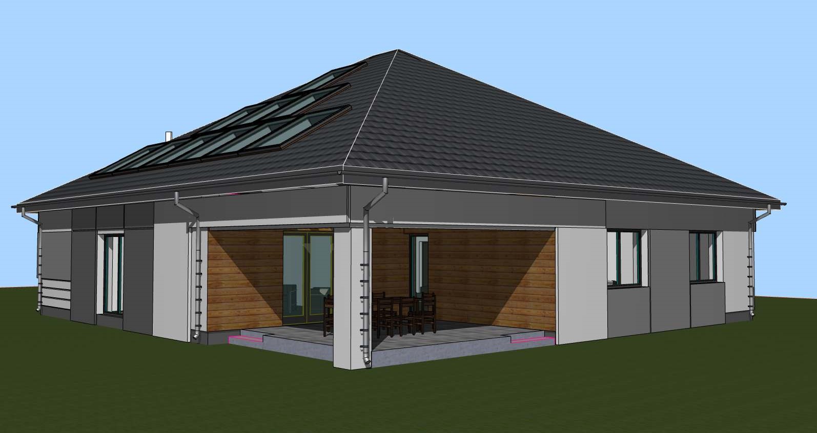 Budynek mieszkalny jednorodzinny z 4 pokojami na parterze oraz pokojem gościnnym i siłownią na poddaszu.