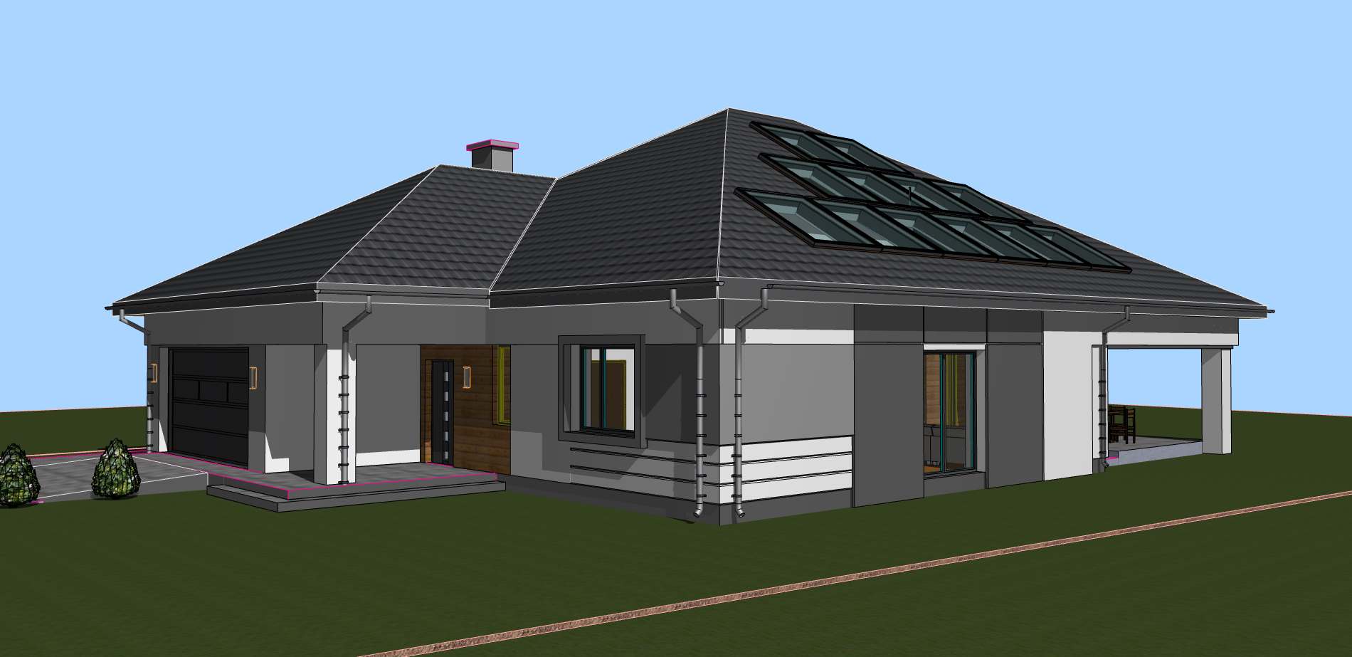 Budynek mieszkalny jednorodzinny z 4 pokojami na parterze oraz pokojem gościnnym i siłownią na poddaszu.