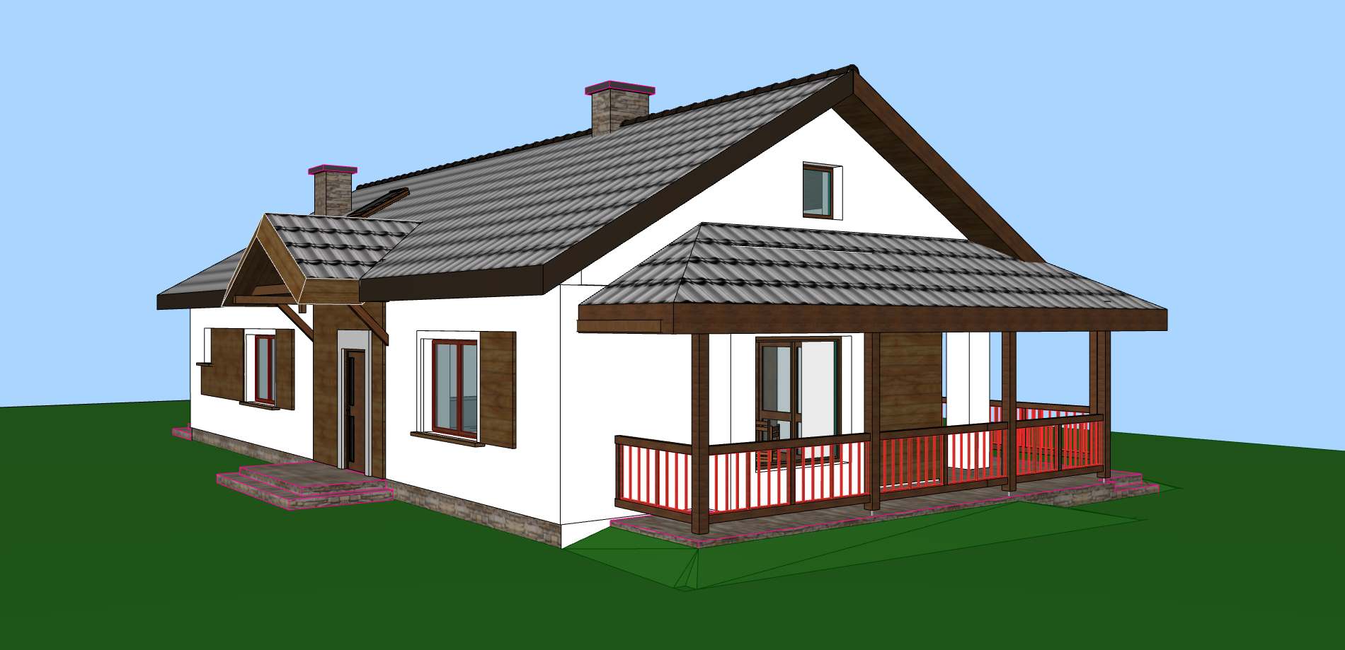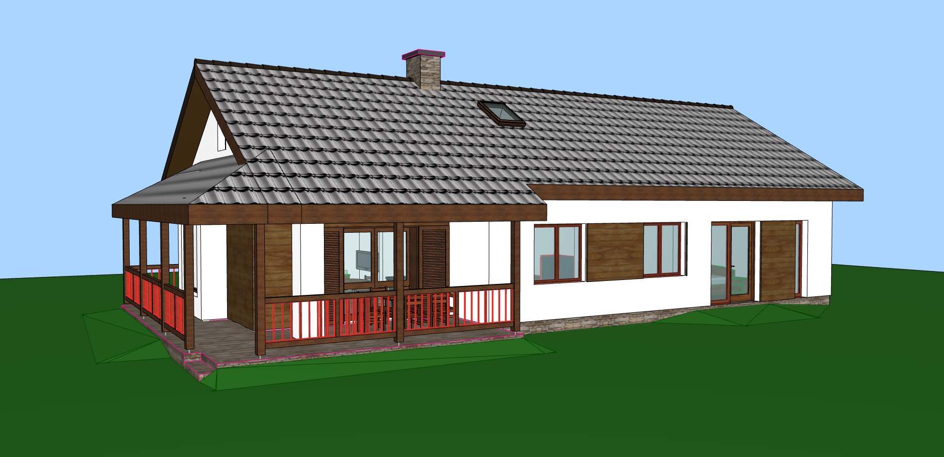 Dom parterowy z powierzchnią użytkową 115 m2 posiada m.in. 3 pokoje.
