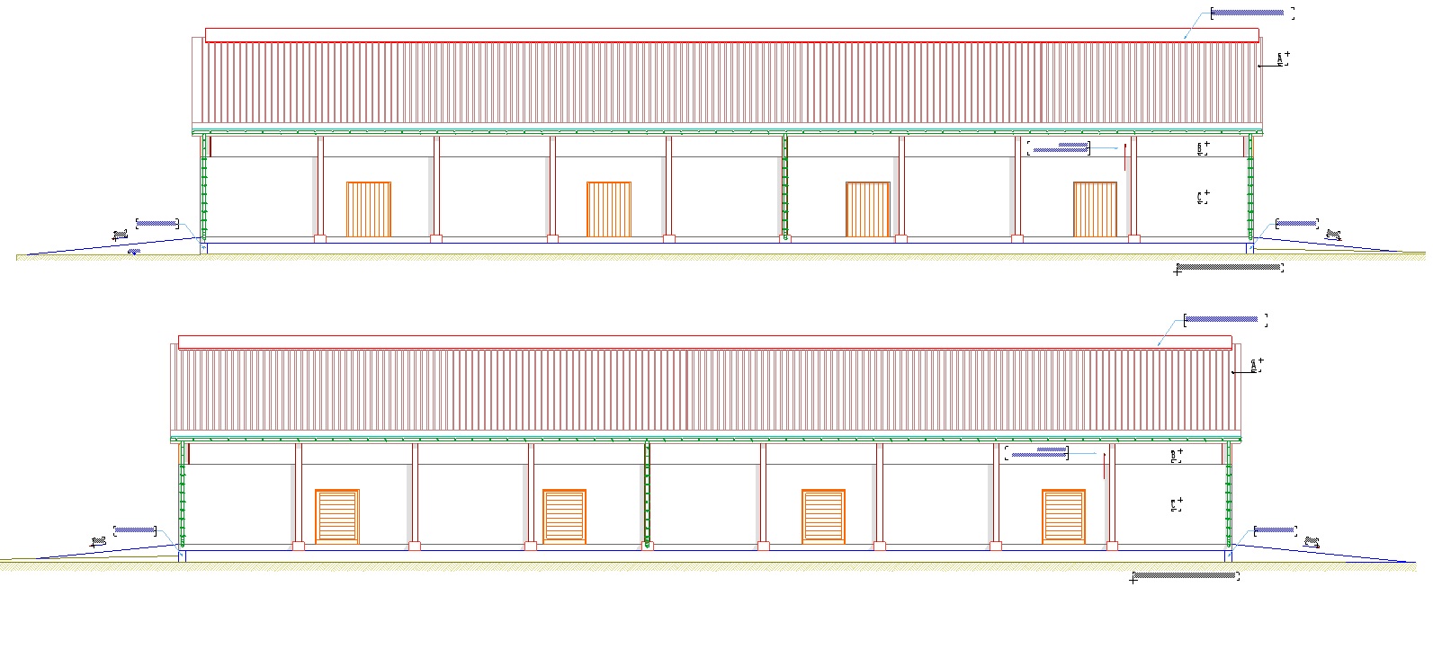 Budynek inwentarski (obora) dla bydła opasowego na 78 sztuk.